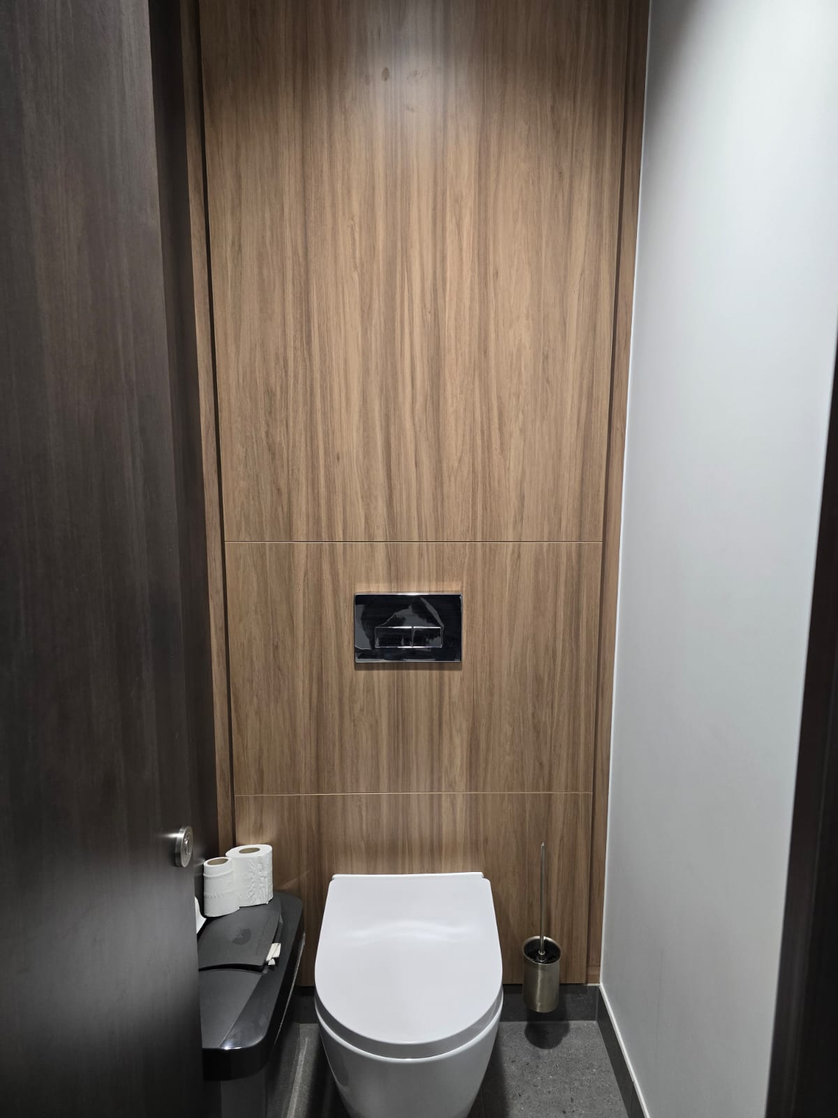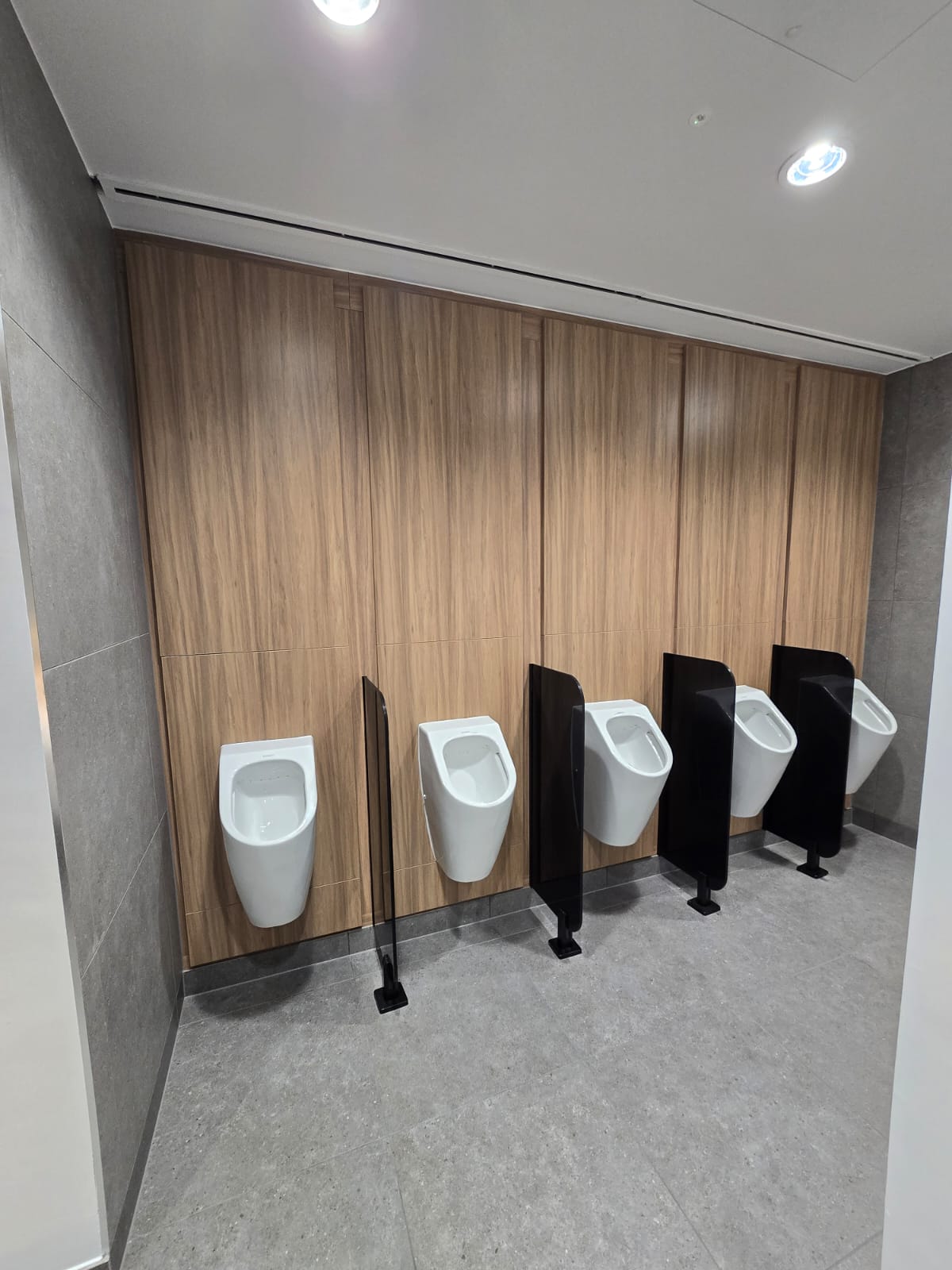• Cubicles & IPS: 20mm Polyrey laminate cubicles and IPS panels for strength, hygiene, and a consistent visual finish.