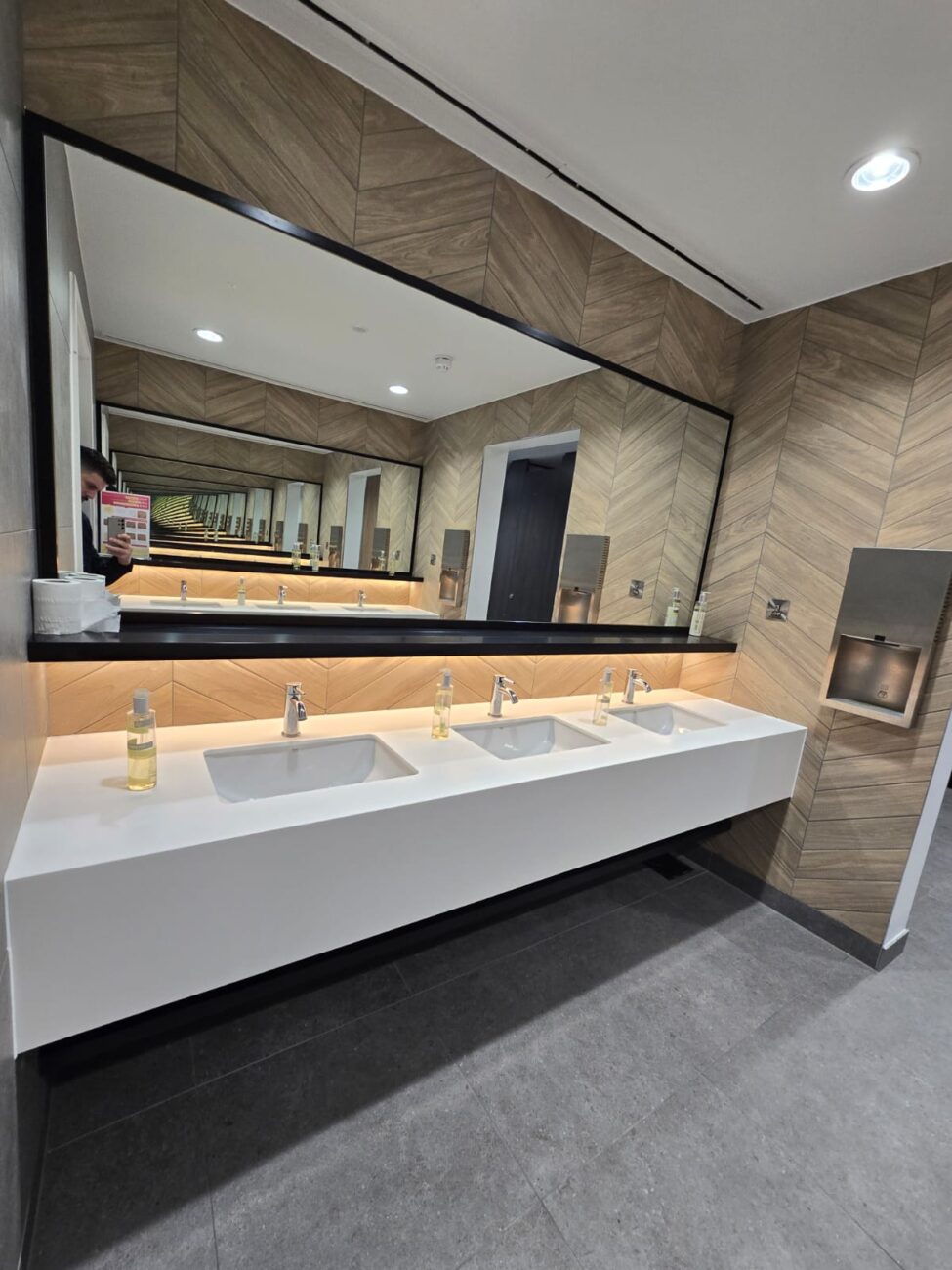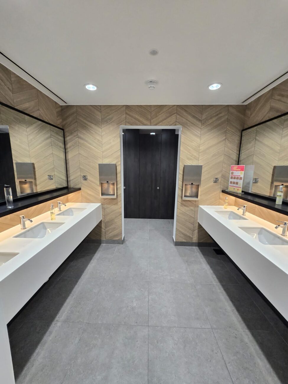 The refurbished washrooms deliver a refined, high-performance environment aligned with HPE’s professional image. With carefully selected materials and fully coordinated services, Stevens Washrooms has provided a premium, future-ready washroom solution that balances aesthetics, hygiene, and durability.