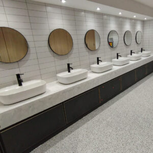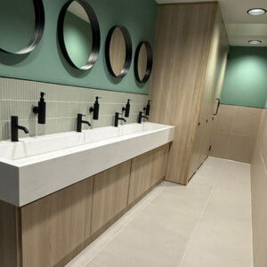 Elevate the functionality and finish of your commercial space with our bespoke vanity units, designed to integrate seamlessly into any high-use setting. From sleek trough basins to practical semi-recessed units, each system is manufactured using robust, low-maintenance materials suited for public-facing environments. Ideal for offices, leisure facilities, hospitality, and more, our vanity units bring together clean design, practicality, and lasting performance.